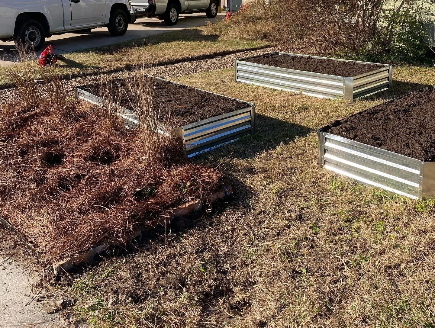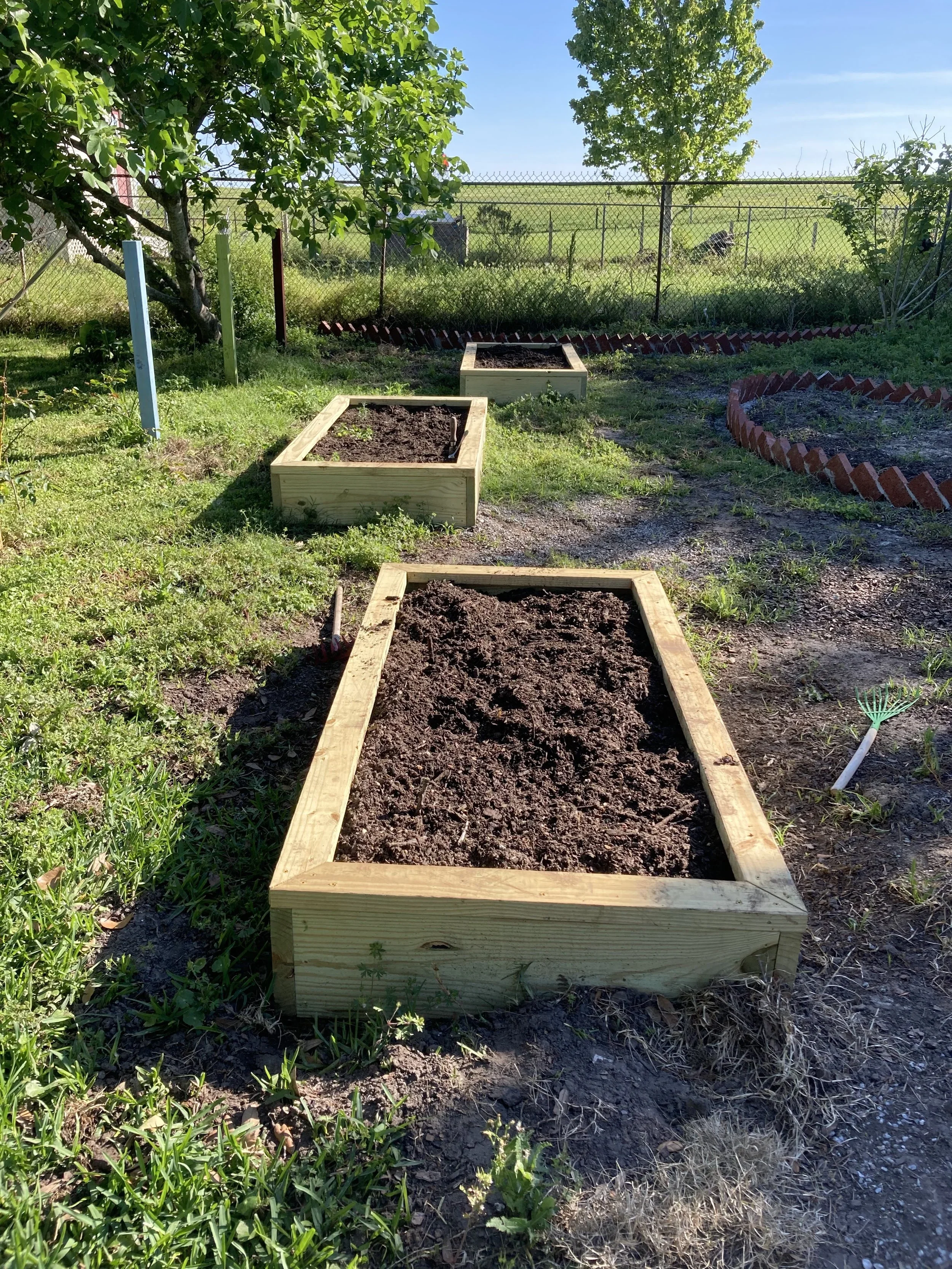 Raised beds and brick edging